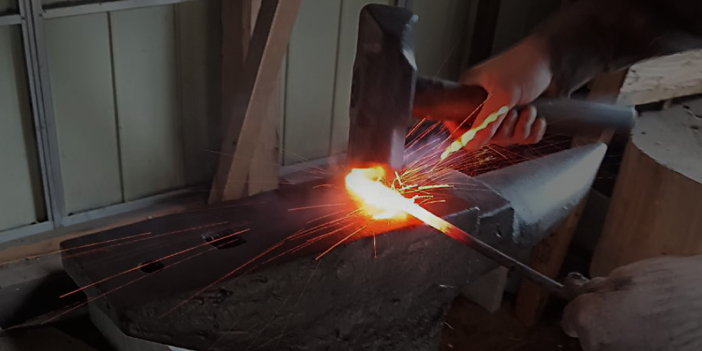 火で熱した金属を叩き、